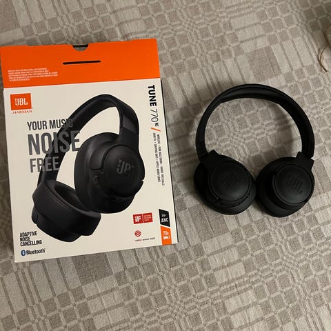 JBL Tune 770NC langattomat kuulokkeet valkoisena. Kuulokkeet ovat ylikorvakuulokkeet, joissa on aktiivinen melunvaimennus. Ne tarjoavat langattoman yhteyden ja ovat suunniteltu mukavaan käyttöön.