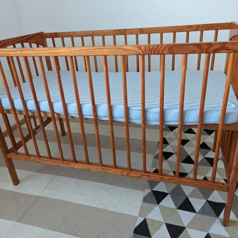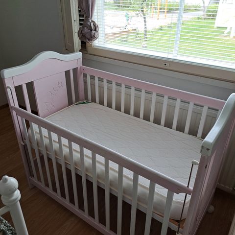 Todella vähällä käytöllä ollut lapsen pinnasänky. 2 maalivauriota siirrosta. Laidat saa irti jolloin saadaan taaperolle sänky.