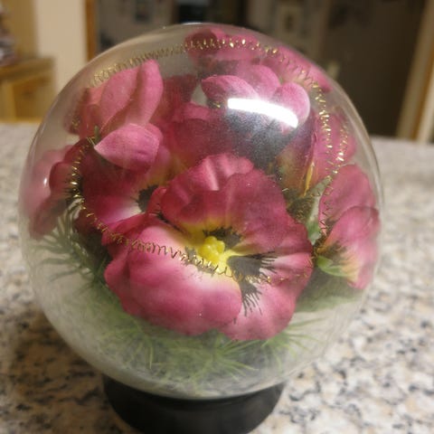 Metallinen hopeakoristepallo, ympärysmitta n 60cm, korkeus n 19cm, kiiltävä hopeanvärinen pinta. Sopii sisustuselementiksi erilaisiin tiloihin.