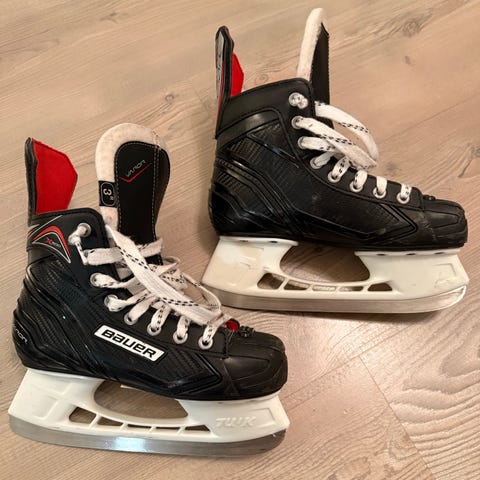 Myydään lasten jääkiekkoluistimet (bauer ns) koko 35.5-36 +´paketti ja teräsuojat