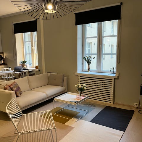 Kuvissa oleva sisällä pidetty hayn nojatuoli. Kuvassa pieni jälki jota ei ole yritetty piilottaa. Siisti hajuton talous.
