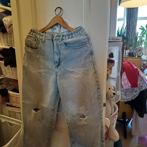Hyväkuntoiset, sisäpuolella taskuissa hieman pesuhaituvaa. Pesulappu leikattu pois.