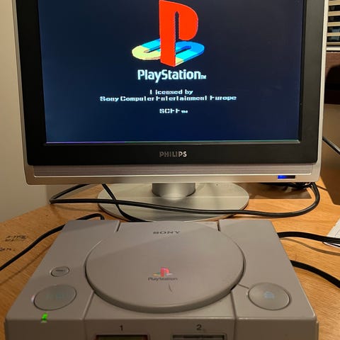 Sony PlayStation pelikonsoli harmaassa värissä. Sisältää ohjaimen ja tarvittavat liitännät. Sopii PlayStation-pelien pelaamiseen.