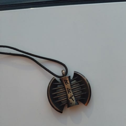 Käyttämätön pronssinen kaulakoru alkuperäisessä korurasiassa