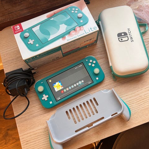 Nintendo Switch Lite käsikonsoli, turkoosi väri. Kannettava pelikonsoli, joka soveltuu mobiilipelaamiseen ja tarjoaa laajan valikoiman pelejä Nintendo Switch -alustalle.