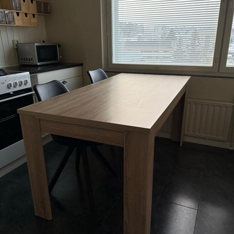 Myyntiin muuton vuoksi siisti ja kunnoltaan erinomainen valkoinen, pieni ruokapöytä kooltaan 74cm x 74cm. Kissatalous.