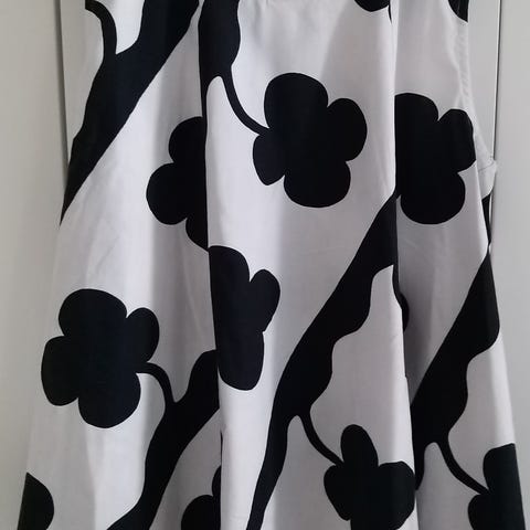 Retro vintage mekko. Ei lappuja, todennäköisesti jonkun itse ompelema. Taustaväri laventeli. Jämäkkä kangas. Pikkasen nyppyä(kuva), mutta muuten loivatava vintage-kunto. Arvioitu koko 42.