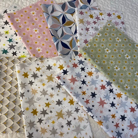 Puuvillakangaspaloja 10 kpl, tilkkutyöt/käsityöt