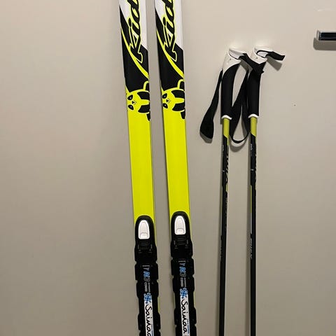 Myydään lasten sukset 140cm ja sauvat 105 cm. Yht 10€