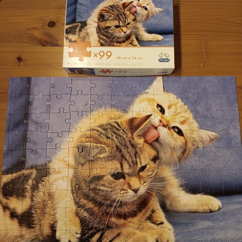 Kissa-palapeli söpössä kissanmuotoisessa lastikossa. 24 palaa. Ehjä ja hyvässä kunnossa.