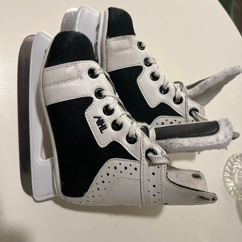 Myynnissä lasten jääkiekkoluistimet (NHL 1000) koko 28 käytössä vain muutaman kerran eli lähes uusi paketti ja pienet teräsuojat mukaan