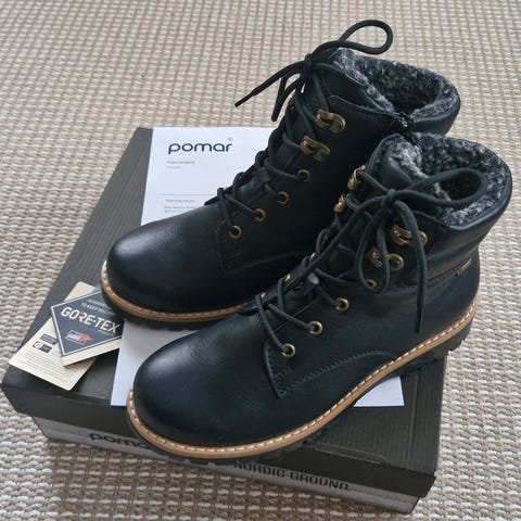 Myydään uudet, vain muutaman viikon käytössä olleet Pomarin Malla Gore-Tex -huopanilkkurit. Todella lämpöiset, pitävät ja mukavat jalassa! Käsitelty oston yhteydessä lian ja veden imeytymistä estävällä suojasuihkeella.