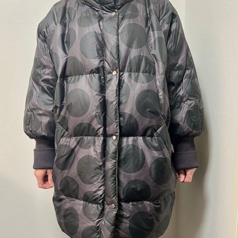 Siisti käytetty kunto. Kangas luultavasti ajan saatossa haalistunut uudesta. Ehjä, ylhäältä ja alhaalta avattava vetoketju.
