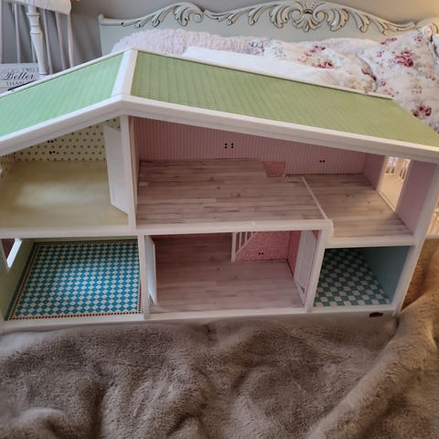 Varattu. Lundby leikkikalupesukylpyamme, vaaleanpunainen, mukana valkoinen kylpytakki ja vaaleanpunainen pyyhe. Sopii lasten leikkeihin ja nukketaloihin.