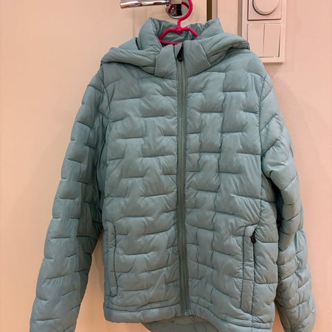 Everestin harvakseltaan käytetty siniharmaa kevyttoppatakki vanutäytteellä koossa 134/140 cm.