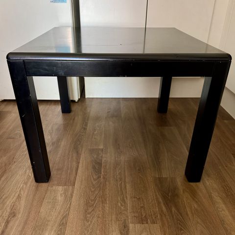 Siistikuntoinen, moderni sohvapöytä jykevällä rautajalalla.