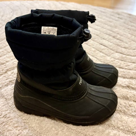 Myyntiin Reiman lasten talvikengät, koko 34. Mustat, sopivat kylmiin olosuhteisiin. Näillä pärjätty Lapissakin -35 asteessa. Kengissä on Vibram-pohja, kantapäissä vähän kulumaa. Muuten hyvässä kunnossa. Uutena ostettu, yhden lapsen kakkoskenkinä pidetyt eli kulki pääosin toisissa kengissä viime talven. Nyt pienet ja siksi myyntiin.
