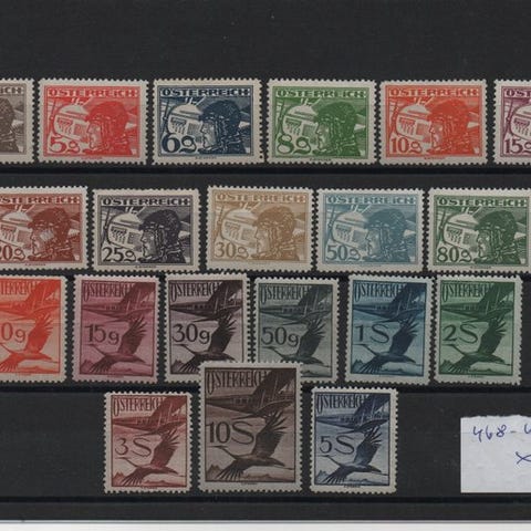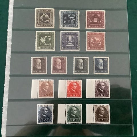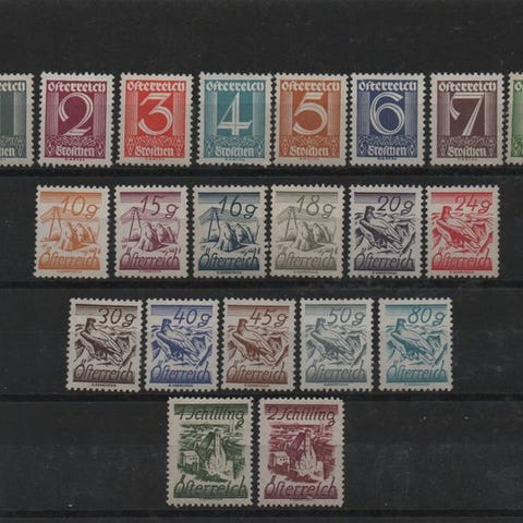 Itävalta ensimmäisen tasavallan postikorttiversio, violettisävyinen numerosarja, täydet korkeimmat arvot, täysin hienostunut postfris, katalogihinta ANK 2025 noin 250 euroa.