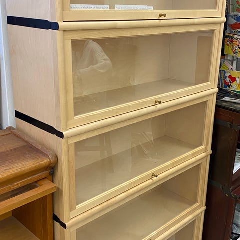 Jos ostaja haluaa, kokonaisuuteen voidaan lisätä kaksi lasiovellista hyllyä (kts viimeinen kuva). Silloin kokonais korkeus on 232,5cm, ja yhteishinta on 650e.