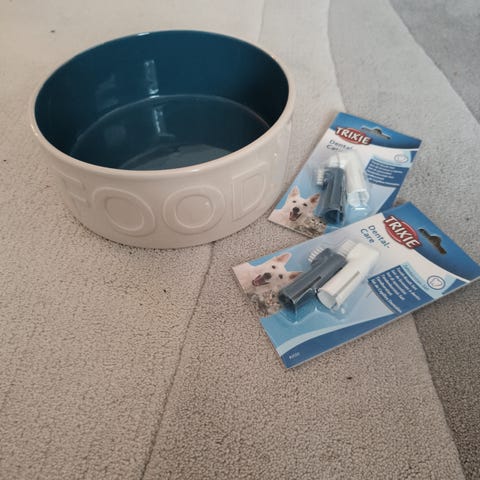 Erilaisia koirantarvikkeita: ruokakupit 1-3€, namipussit 3-5€, kaulapannat ja valaat 2-5€, asu 2€, joulusukka 1€ ja pureminen estoaine 2€. Tee tarjous, nouto Tikkurilasta tai sopimuksen mukaan.