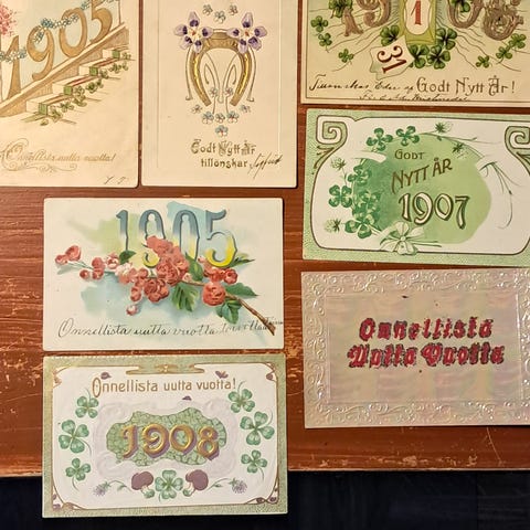 Vanhoja onnittelukortteja.