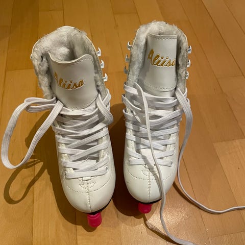 Alisa lasten luistimet, koko 31, valkoinen väri. Soveltuvat eri luistelulajeihin. Luistimissa on perinteinen nauhakiinnitys ja teräksiset terät.