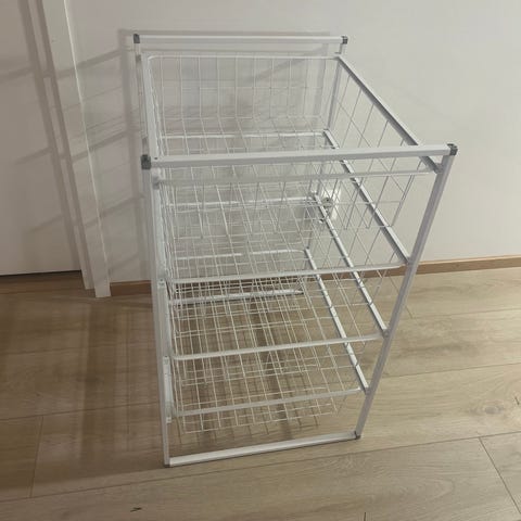 Myydään tarpeettomana kuvanmukaiset Ikea Antonius tai vastaavat korihyllyköt. Olleet vaatekomerossa vaatteiden ja liinavaatteiden säilytyksessä.