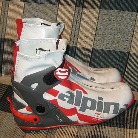 Alpina merkkiset vapaan tyylin (luistelu tyylin) hiihtomonot. Kokomerkintä 36 ja sisämitta 23 cm. Nnn mallin sidetyyppiin tarkoitetut. Siistikuntoiset monot, kaikki lenkit, vetoketjut yms. kunnossa. Hinta 70 e (Rovaniemellä, postittaminenkin onnistuu tarvittaessa)