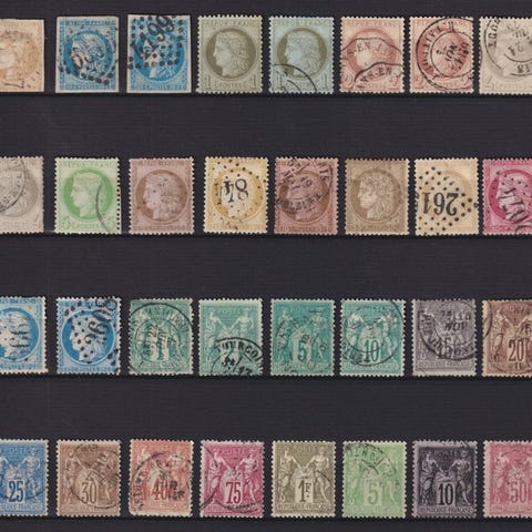 Ranska 1900/1954 - Valikoima valintakortteja, joissa on postimerkkejä ja
