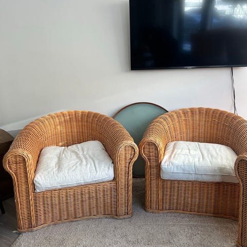 Kolme Peacock Chair -rottinkituolia, Florentine-malli. Ostettu viime vuonna Belianilta. Tuolit ovat erinomaisessa kunnossa ja käytännössä kuin ostetut.