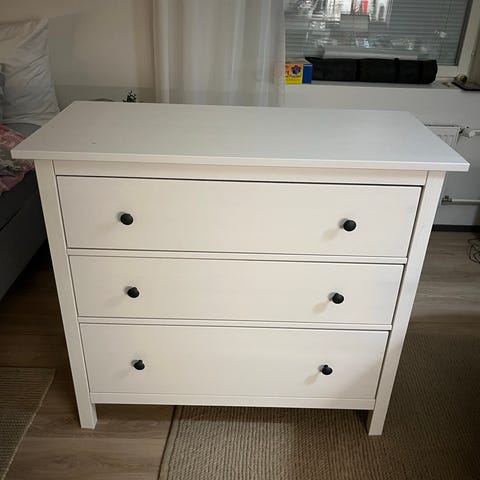 Tilaihme, sillä tähän mahtuu komerollinen vaatteita. Laatikot kulkevat kevyesti rullakiskoilla.