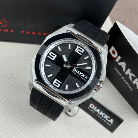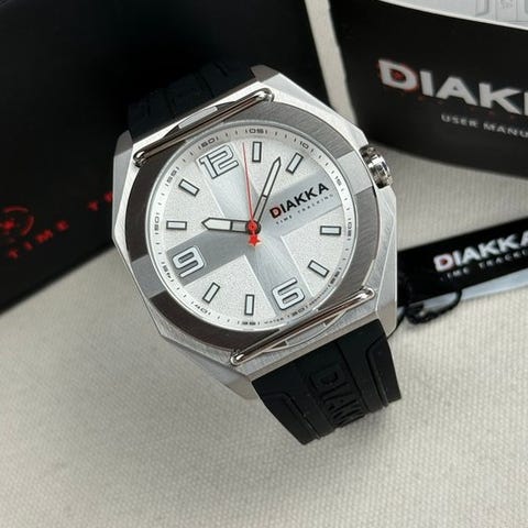 Urheilullinen miesten kello Diakka-merkkiseltä, referenssinumerolla D1639-FW-SS. Malli Vice III. Kello toimii Quartz-koneistolla (Miyota 2036). Helposti luettavissa kontrastin ansiosta värikkään taustan ja korostusten välillä. Muotoiltu tyylikkääseen kellotauluun. Kellotaulun lasi on safiiria.