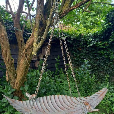Kaunis koristeellinen lintuallas valmistettu metallista.