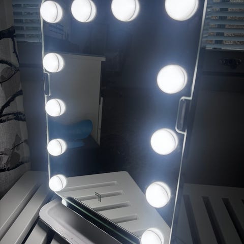 Myydään meikkipeili valoilla. Kytketään pistorasiaan.