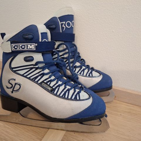 Valkoiset CCM-luistimet (vähän käytetyt), jämäkät varret, karvavuori, teroitettu syksyllä 2024