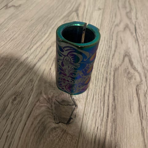 Temppuscootin clamppi ilman ruuveja. Käytetty, ehjä. Pinnassa vähän käytön jälkiä.
