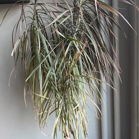 Korkea sisäkasvi, jossa on pitkät vihreät lehdet. Kasvi soveltuu sisätiloihin