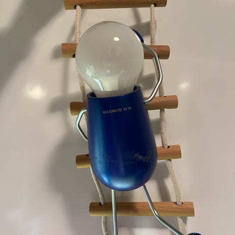 Seinään ruuveilla (ei mukana) kiinnitettävä lamppu, muovia. Varsi taipuva, saa käännettyä valon suuntaa. Valotehoa pystyy säätämään.