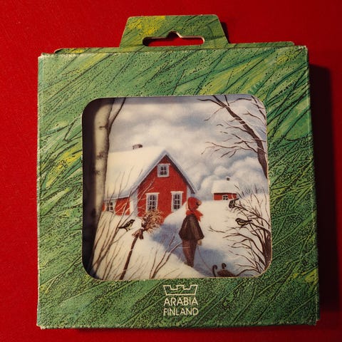 Anita Rantanen-Siewers suunnittelema Kotiseudun Syksy -seinälautanen. Hyväkuntoinen. 12x12 cm.