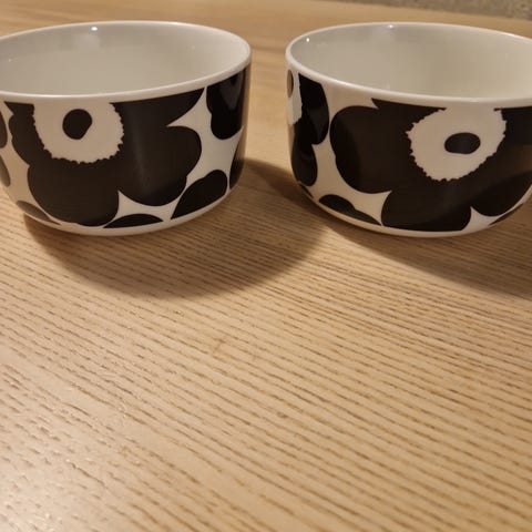 Marimekko Unikko kulhot 2 kappaletta. Värit musta ja valkoinen. Koko 2.5dl. Myyn molemmat kerralla. Yhteishinta 25 euroa.