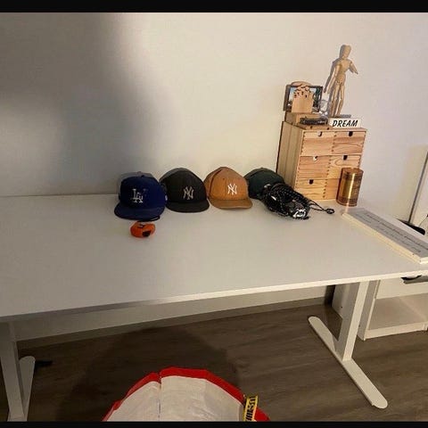 Pöytään kuuluu punamusta koko pöydän kokoinen hiirimatto. Myydään tarpeettomana.