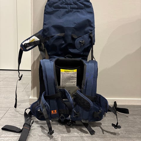Minimeis -kantorinkka, jolla lasta kannetaan harteilla. Enintään 20 kg lapselle. Mahtuu kätevästi laukkuun joka tulee mukana. Käyttöohjeet mukana.