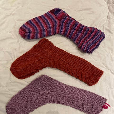 Käsinkudottuja villasukkia 7 veikka lanka (koko 39vaal.pun ja vihreä) harmaat 37