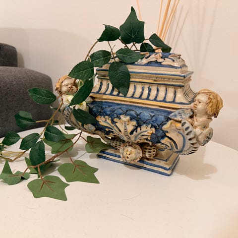 Tummansininen posliinivaasi/-maljakko. Pohjassa leima "Jasba Germany Handarbeit". Korkeus 16cm.