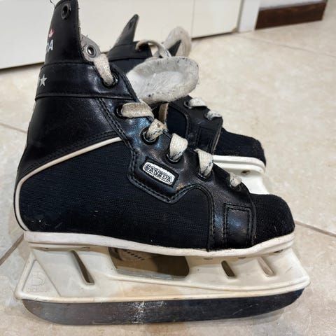 Viime talvena teroitettu ja sen jälkeen muutamasti luisteltu. Hyvässä terässä siis. Pieniä käytön jälkiä jotka näkyvät kuvassa.