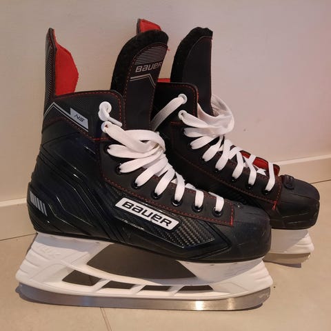 Bauer Pro jääkiekkoluistimet. Luistimet on suunniteltu jääkiekon harrastamiseen ja tarjoavat tukevan rakenteen ja terävät terät pelikäyttöön. Pohjallisen pituus noin 25-25,5 cm. Kokomerkintää ei löydy, mutta vastaa kokoa 40,5/41.