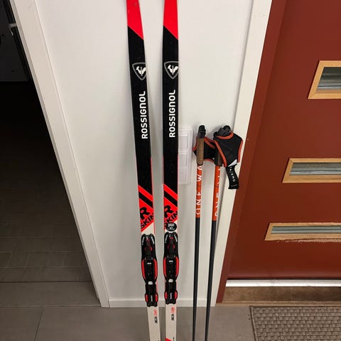 Rossignol Delta comp r-skin sukset (156 cm) ja sauvat 110 cm.
