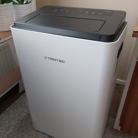 Mitsubishi Electric kannettava ilmastointilaite valkoisella värillä. Laitteessa on useita säätöpainikkeita ja kaukosäädin helppoon käyttöön. Sopii tilojen jäähdytykseen. sarjanumero PACF212COW.