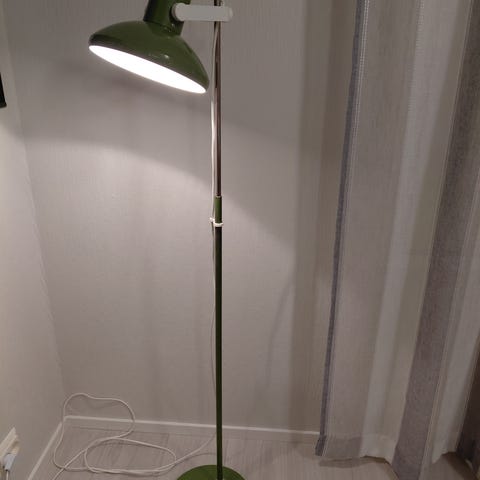 Vintage-tyylinen lattiavalaisin. Korkeus 150cm, varjostimen halkaisija 50cm.