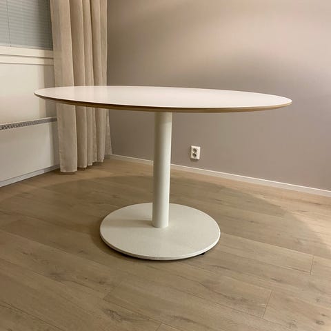 Hyväkuntoinen Ikean pyöreä Docksta ruokapöytä. Ei naarmuja tai kolhuja. Hinta uutena Ikeassa 179€.